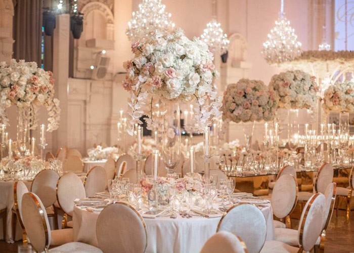 What distinguishes this trend is the riot of flowers with some or without foliage: descending flower showers on the dance floor, flowered chandeliers, runners on long imperial tables, large arrangements as centerpieces to frame the entire context. The color palette of a luxury wedding does not follow a rule but the shades chosen must match the colors of the venue and are often combined with gold details and/or the transparency of crystals. At the same time, even the wedding stationery must be sought and it is therefore advisable to print on quality papers, fine fabrics or different materials such as plexiglass.